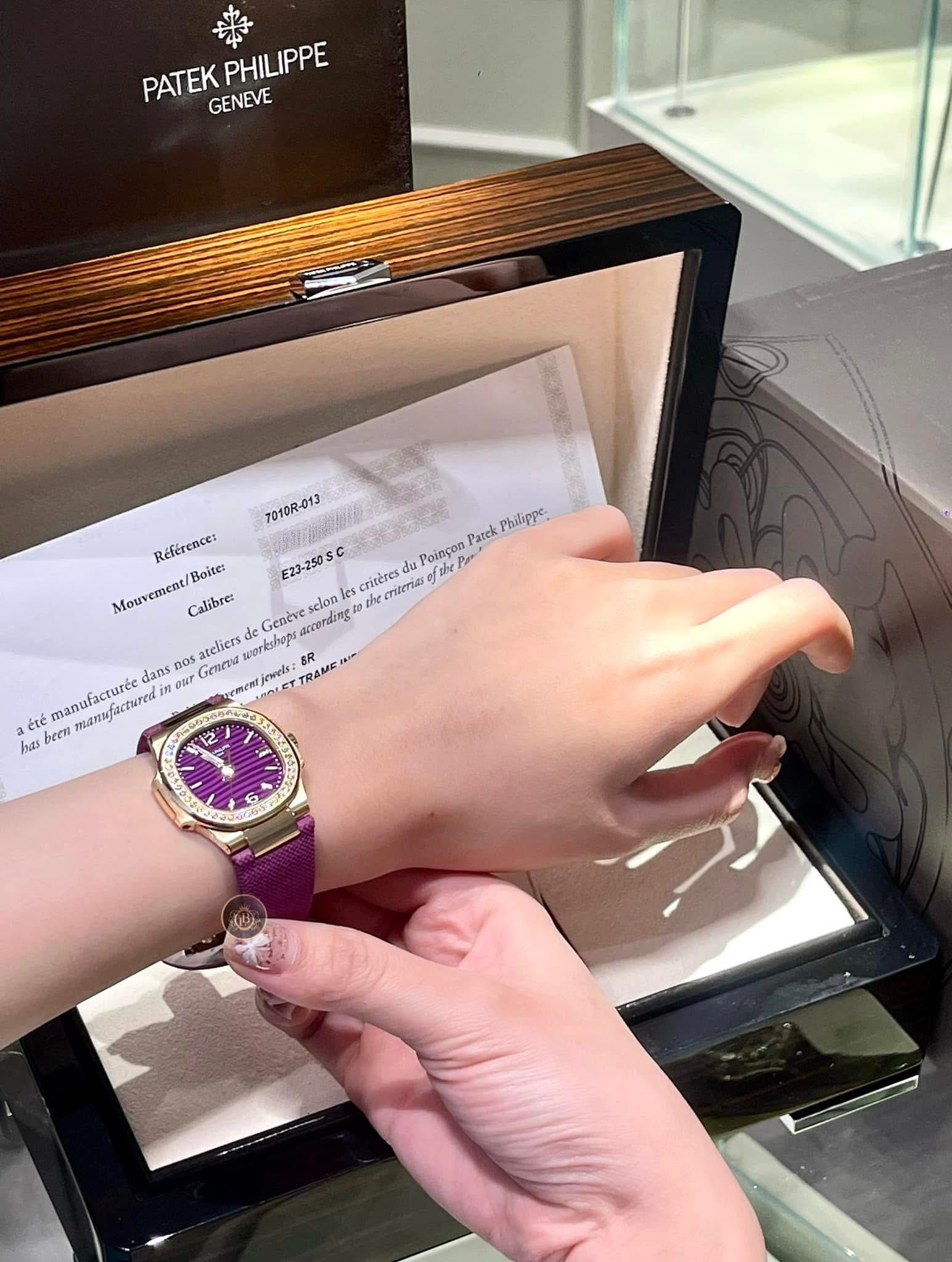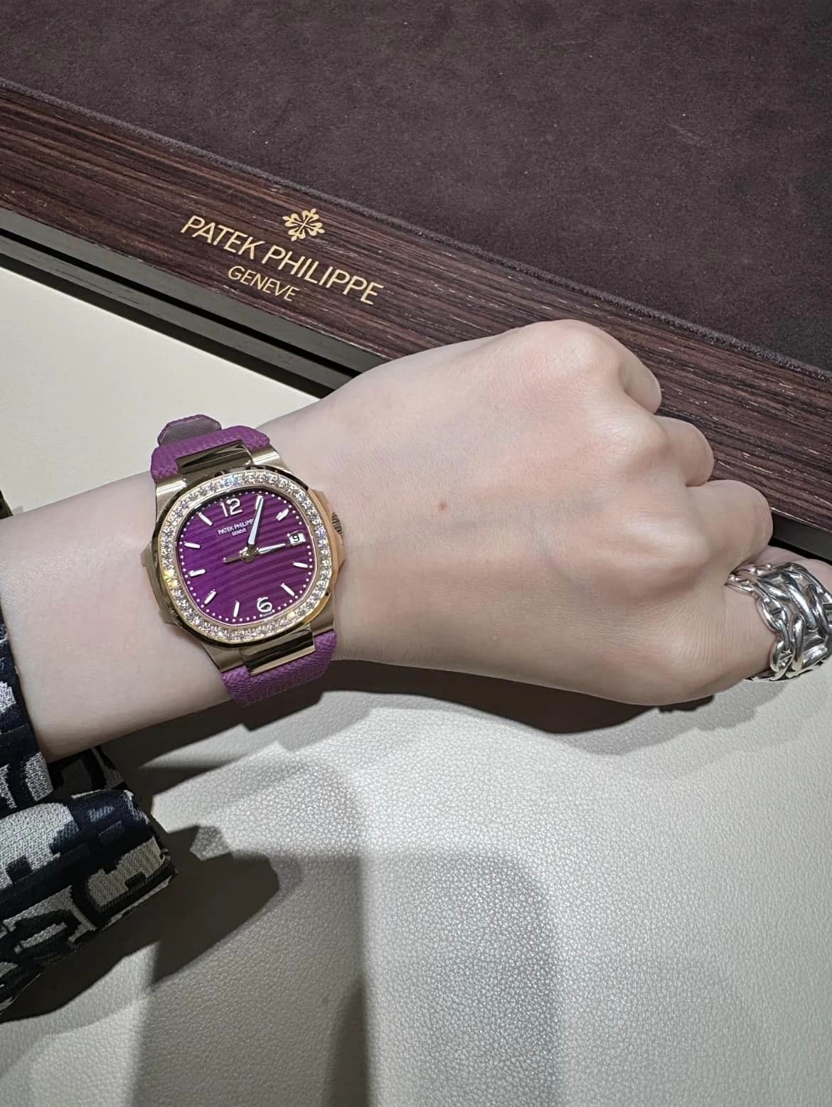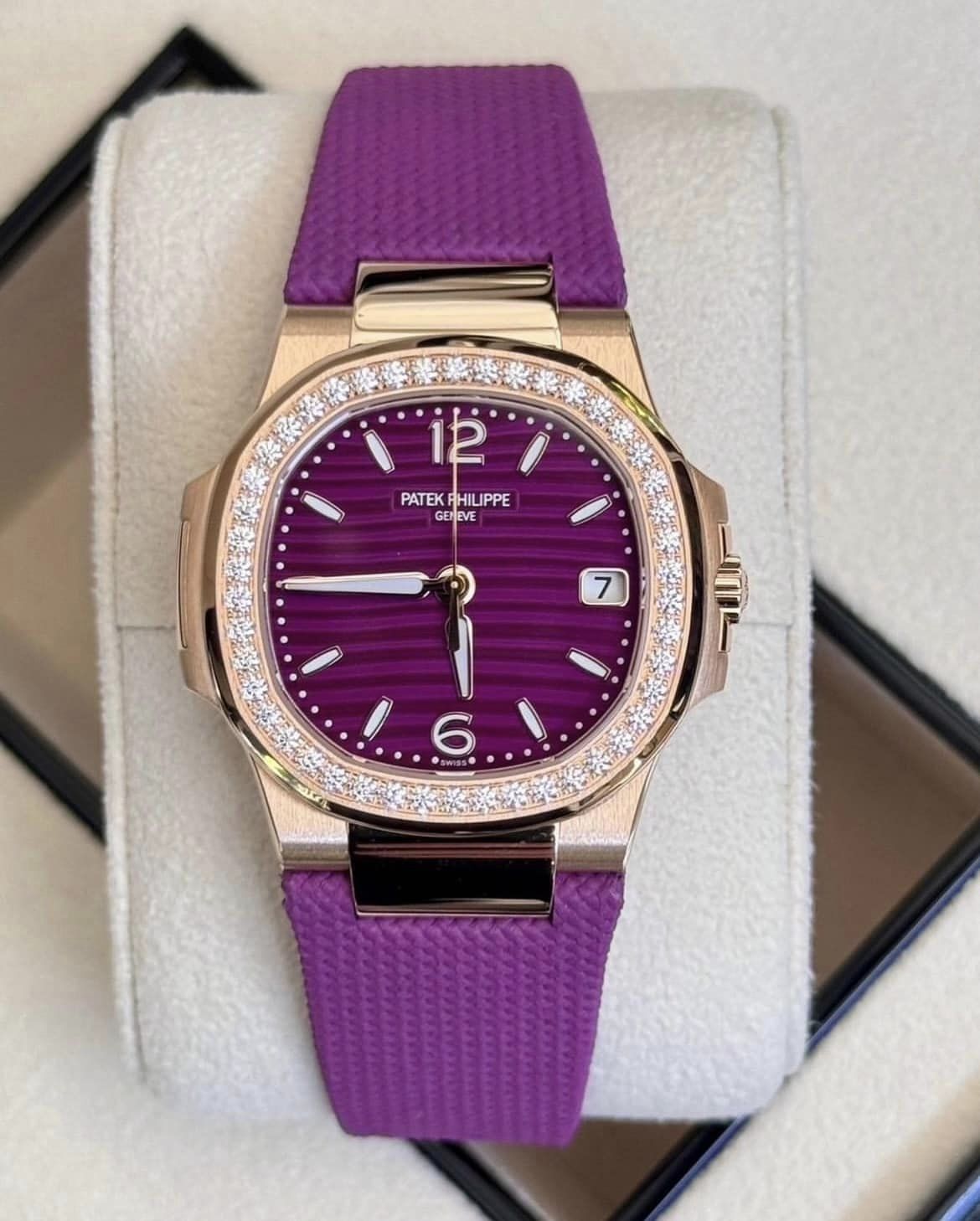 Một điểm nhấn đặc biết chính là sự kết hợp màu sắc trong chiếc Patek Philippe Nautilus 7010R-013 được cho là hết sức tuyệt vời, luôn đề cao sự nhã nhặn của các quý cô bên trong đó. Nếu bộ vỏ khung được xem là đại diện cho tính chất sang trọng quý phái của mỗi cô gái, thì mặt số bên trong lại được đánh giá rất cao khi đem đến cái nhìn thanh lịch nền nã. Nền mặt số đã được làm với tông màu tím. Nhưng chẳng hề đem lại cái nhìn đơn điệu, trên nền mặt số là những vân sóng mềm mại đầy nữ tính nhưng ẩn chứa sức mạnh cực kỳ tiềm tảng như sóng biển.
