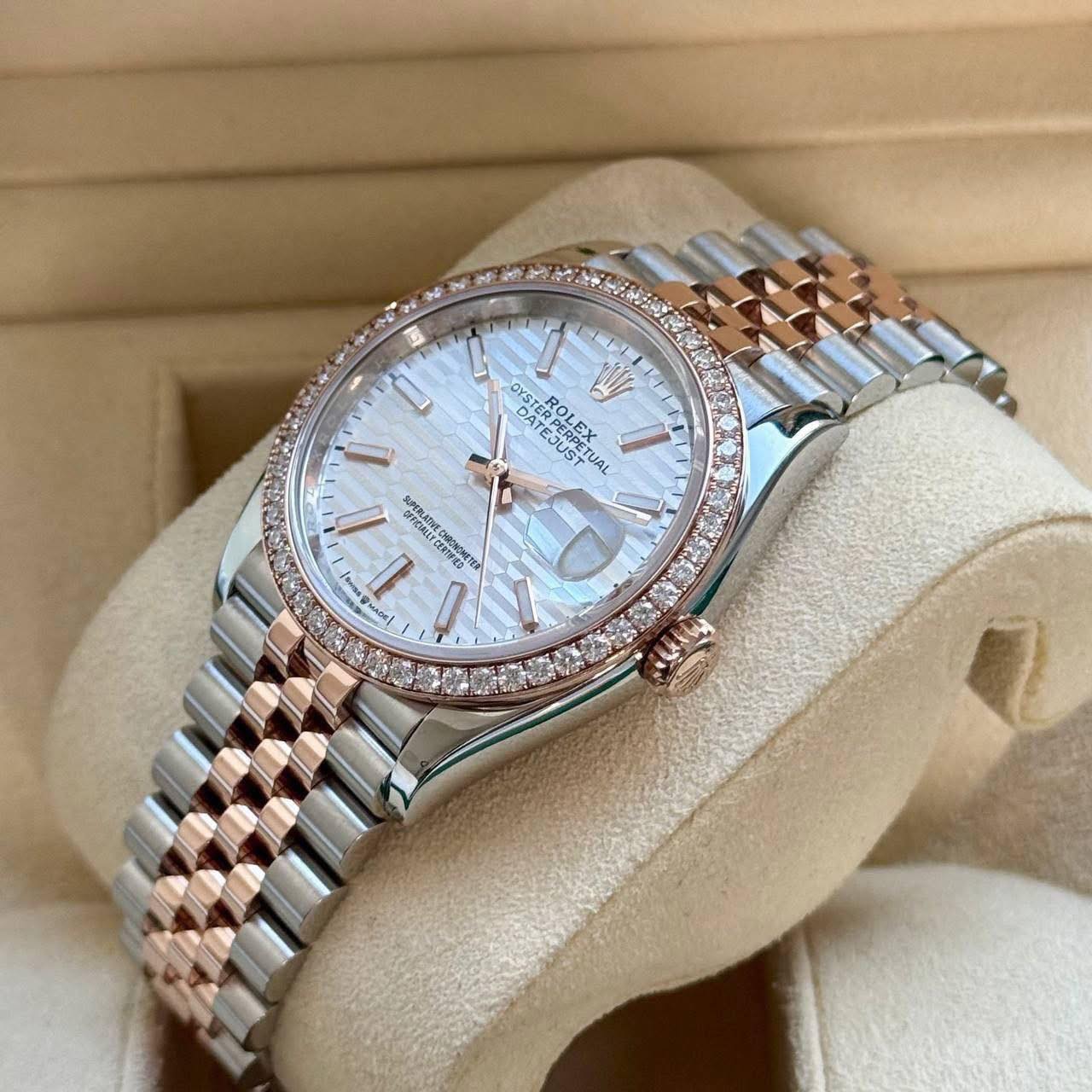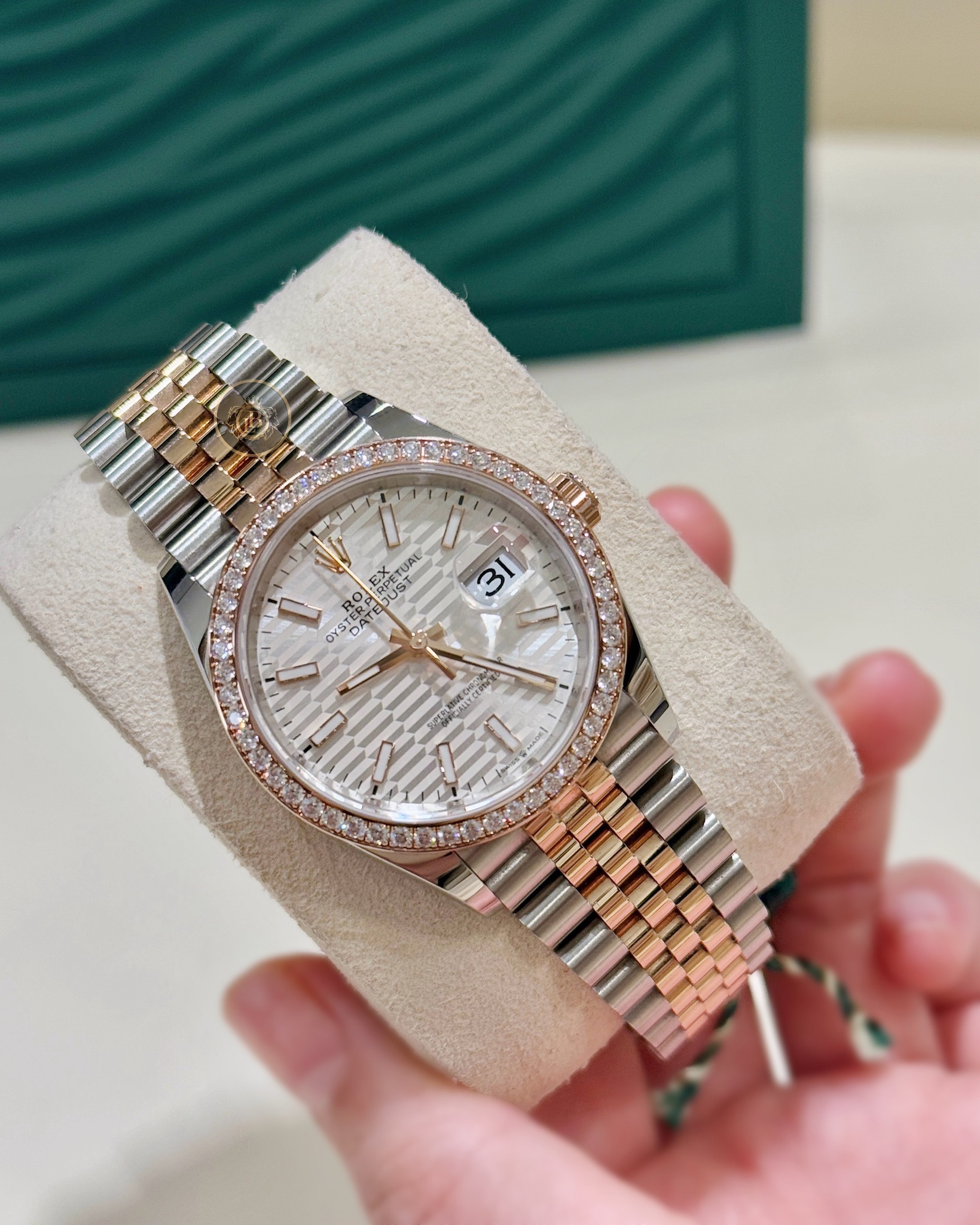 Rolex Datejust là một trong những biểu tượng bền vững nhất của ngành đồng hồ Thụy Sĩ — vừa mang nét cổ điển, vừa không ngừng được nâng cấp để phù hợp với người dùng hiện đại. Trong số đó, phiên bản Datejust 36mm Ref. 126281RBR-0021 nổi bật nhờ thiết kế demi vàng hồng Everose, niềng đính kim cương chính hãng (factory-set) và mặt số bạc họa tiết fluted độc đáo. Đây là chiếc đồng hồ vừa phù hợp để đeo hàng ngày, vừa có giá trị sưu tầm và đầu tư dài hạn.